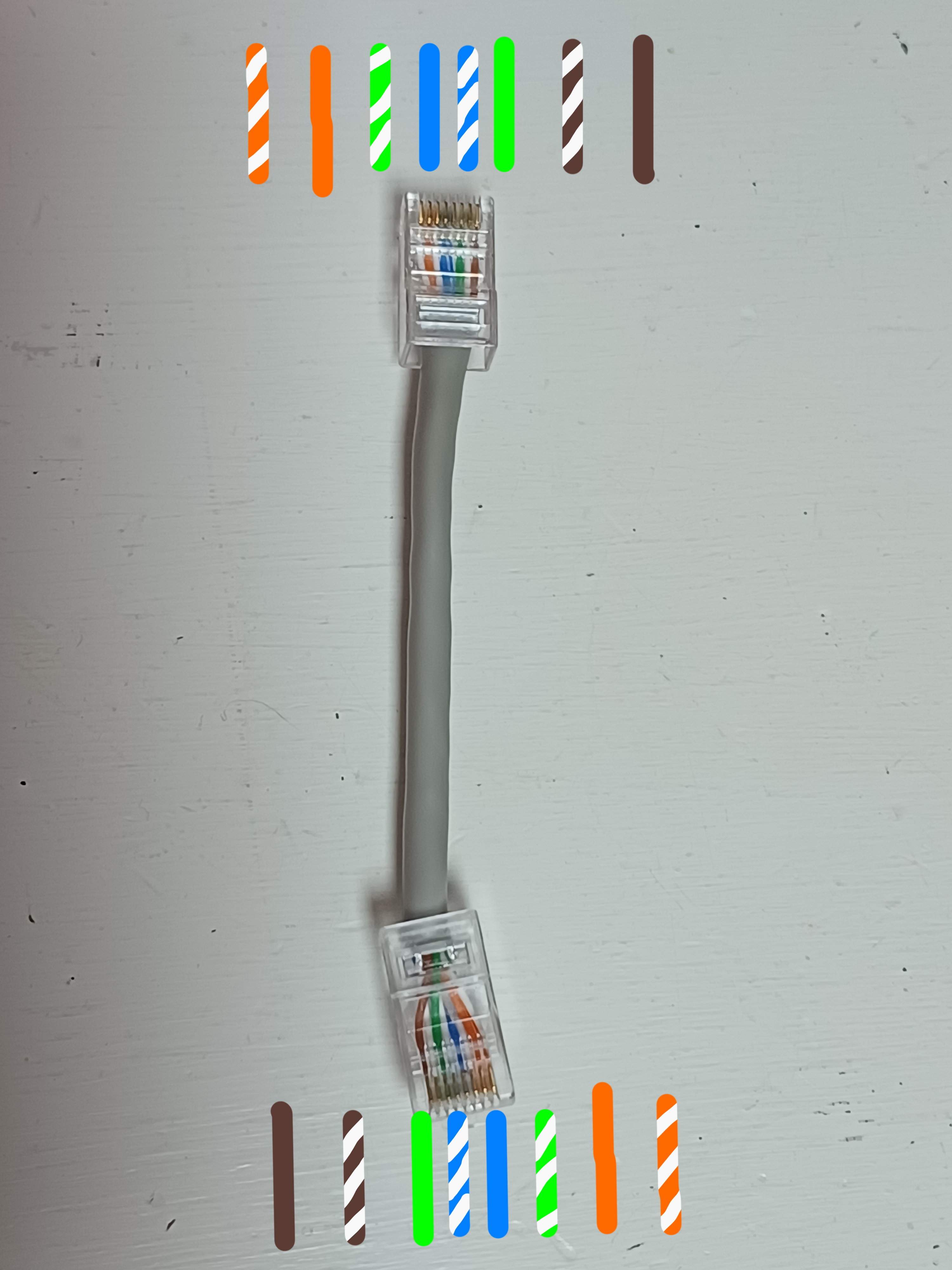 크로스 케이블: 흰녹-녹-흰주-파-흰파-주-흰갈-갈